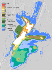Distributional data for eight taxonomic groups (asteroids, bryozoans, benthic foraminiferans, octocorals, polychaetes, matrix-forming scleractinian corals, sponges, and benthic fish) have been used to train an environmental classification for those parts of New Zealand's 200 n. mile Exclusive Economic Zone (EEZ) with depths of 3000 m or less.